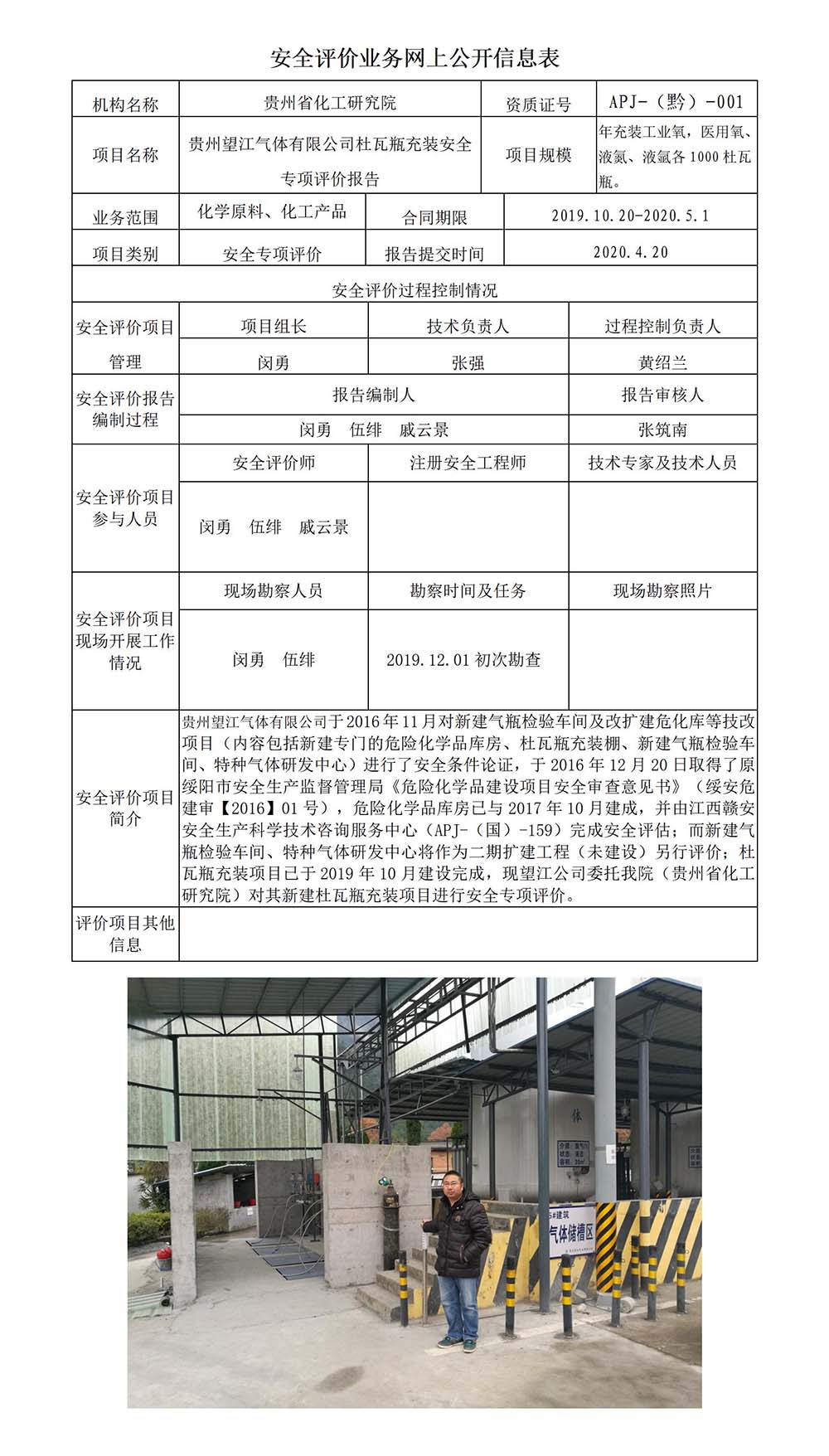 贵州望江气体有限公司杜瓦瓶充装安全专项评价报告