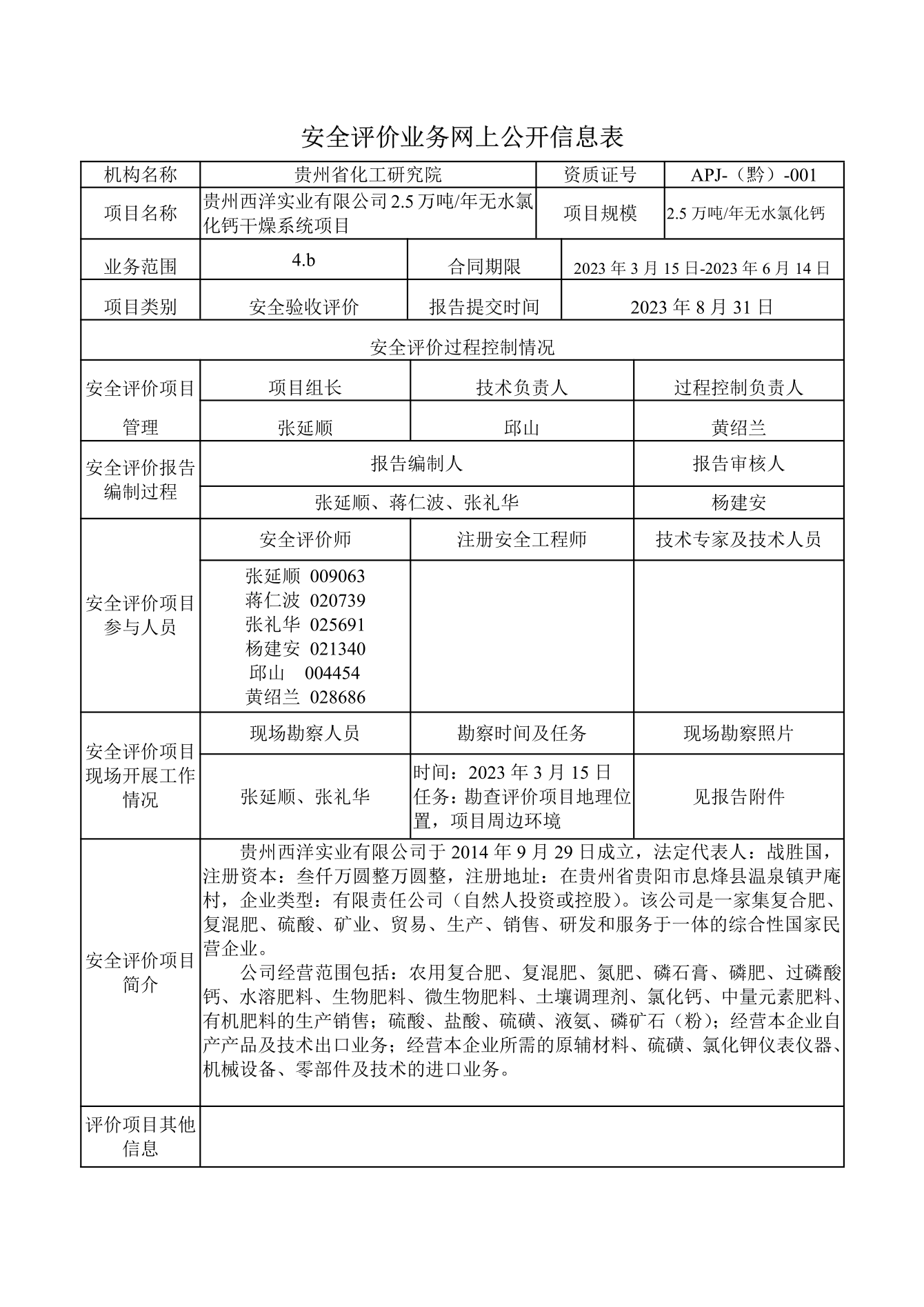 贵州西洋实业有限公司2.5万吨/年无水氯化钙干燥系统项目